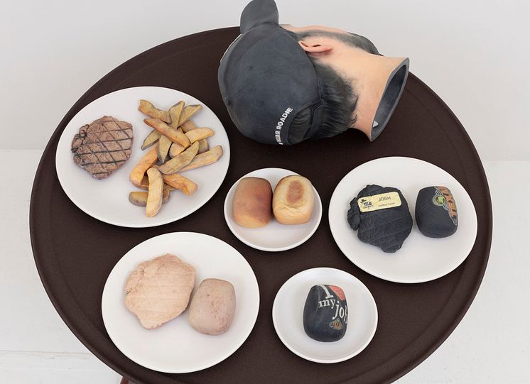 Keep The Change (Texas Roadhouse Waiter’s Head with Cap), 2018 (detail)